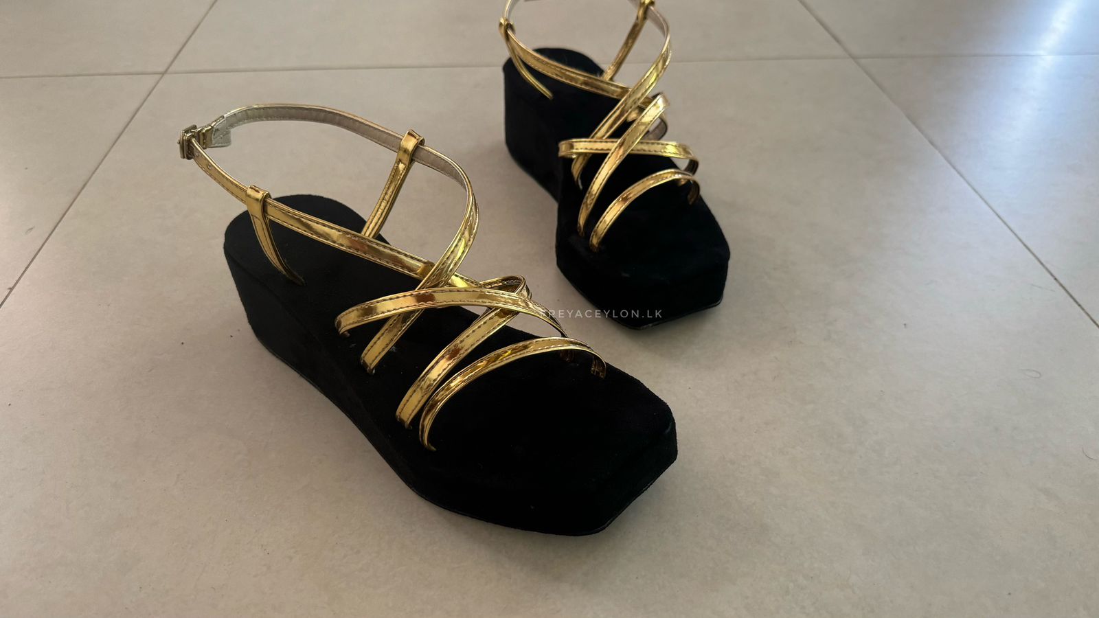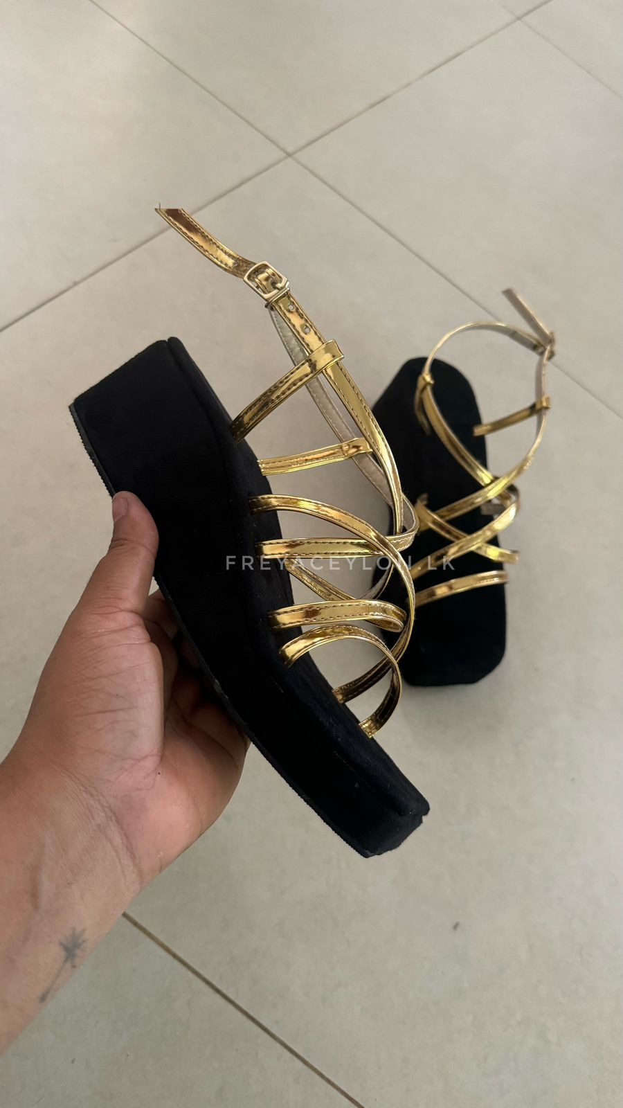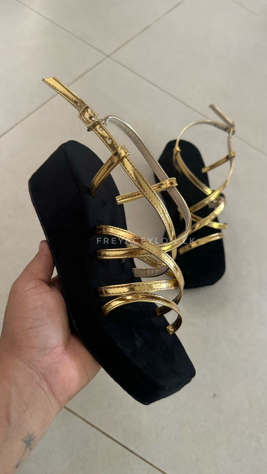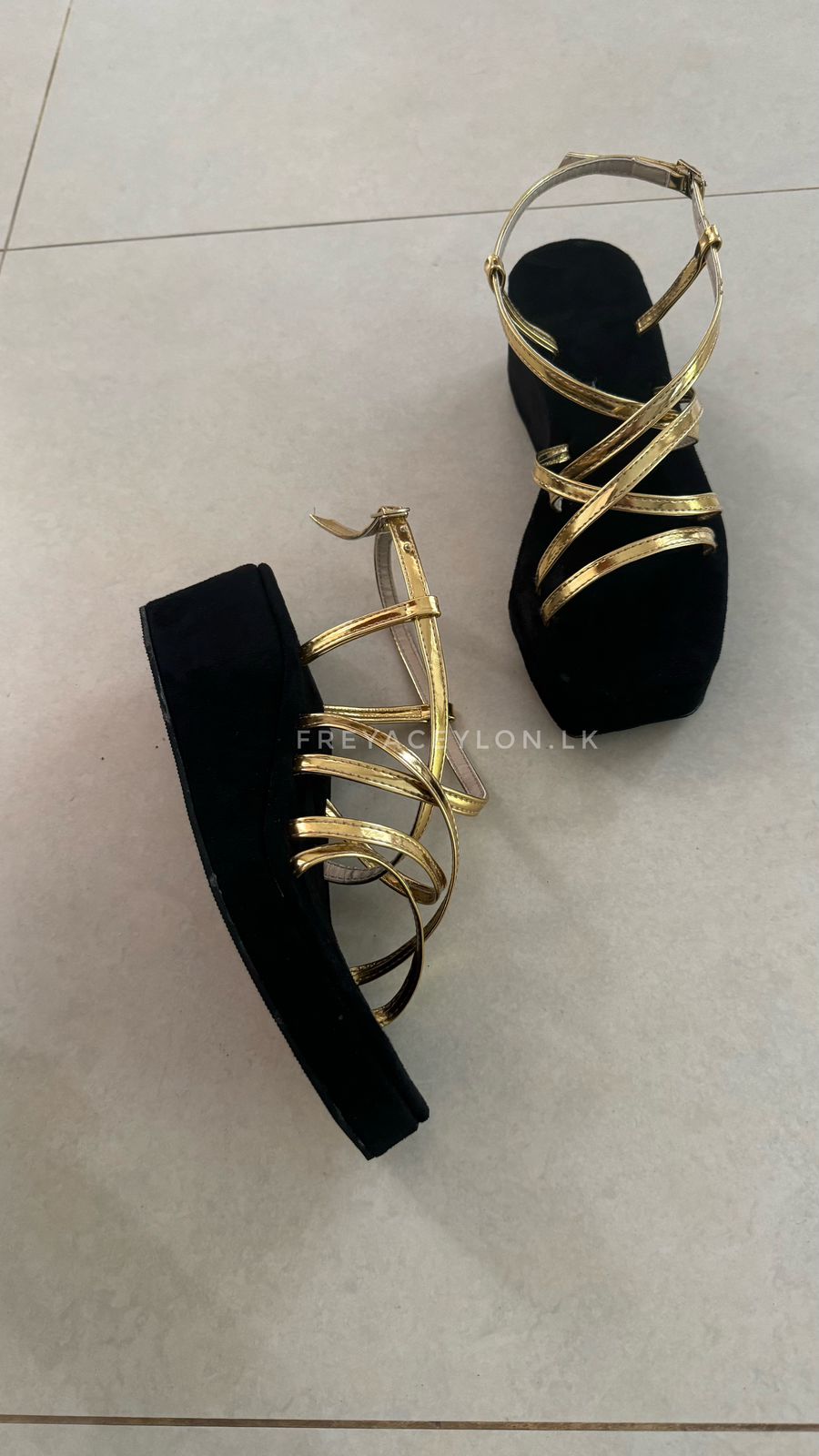 Be the first to review “Gold Strappy Suede Wedge Sandals”